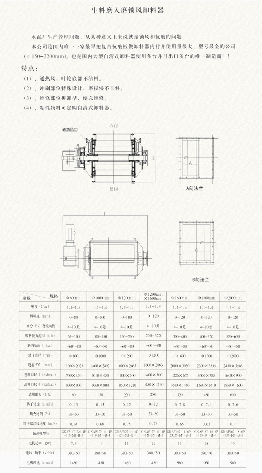 1、此葉輪給料機是本公司專門為生料入磨,定量給料及作為正壓或負壓輸送系統中設計的鎖風喂料裝置。