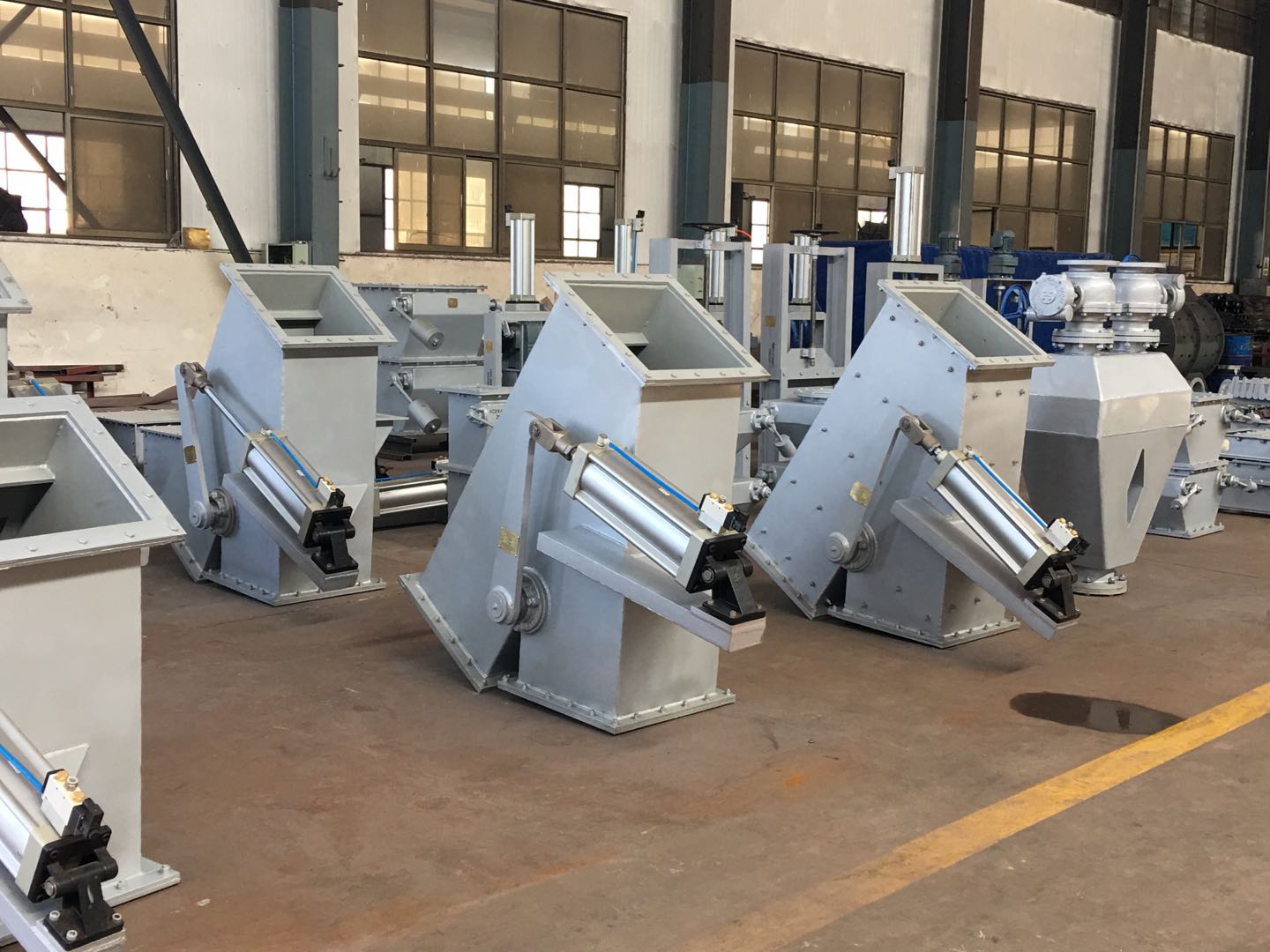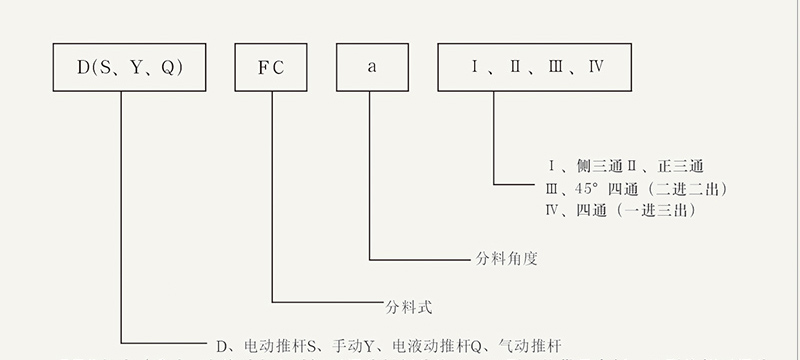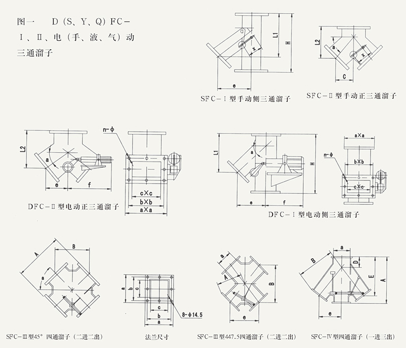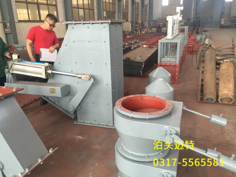 該閥采用鋼板焊接結構、具有體積小、重量輕、阻力小。采用電動推桿(電液動、氣動推桿)驅動,可以快速切換物料流向。